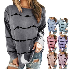 2021 秋冬 女装 wish扎染条纹印花T恤卫衣...