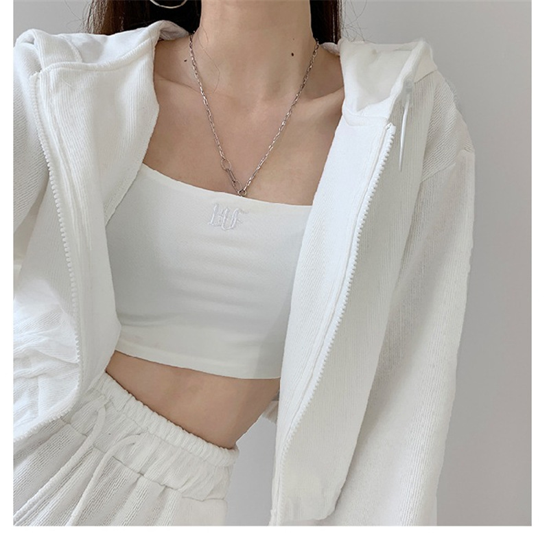 甜酷风黑色小外套女春秋薄款短款收腰露脐帽衫卫衣拉链...