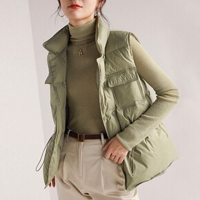 2022新款羽绒马甲女短款白鸭绒秋冬系带收腰立领面...