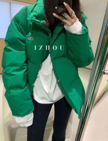 2021冬季新款韩版宽松BV绿色小刺绣立领羽绒服女...