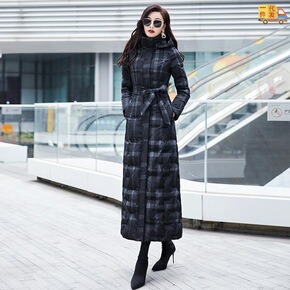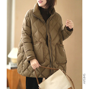 2021新立领菱格休闲宽松A字中长款90白鸭绒立领...