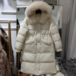 2022韩版宽松气质通勤翻领白鸭绒大狐狸毛羽绒服外...