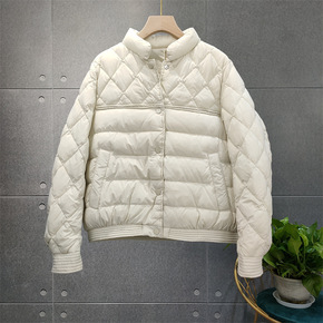21年秋冬新款轻薄短款立领波浪格子百搭显瘦90白鸭...
