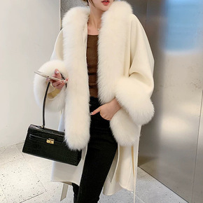 反季促销2022年秋季新款廓形羊中长款米色貂小众宽...