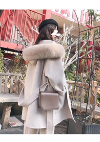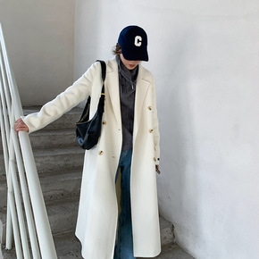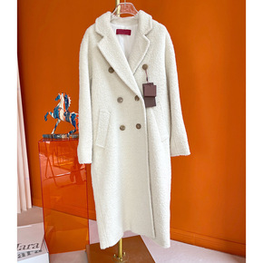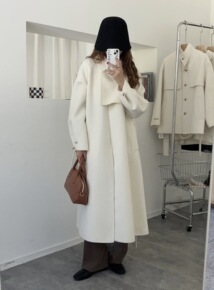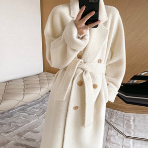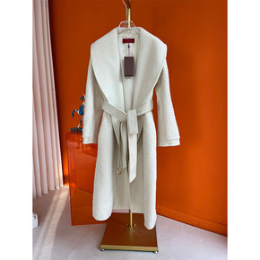 爱马家 秋冬新款甄选白绒双面羊绒大衣翻领廓形中长款...