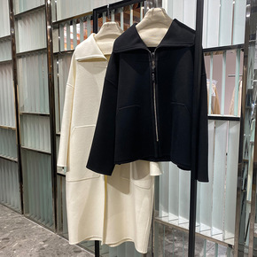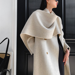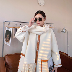 2022韩版秋冬新款围巾领设计走秀气场双排扣双面大...