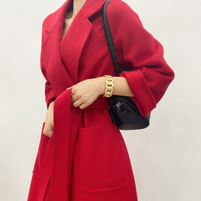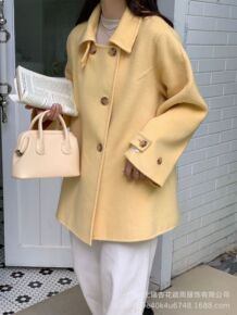 2022年新款秋冬季黄色高端双面羊绒大衣女中长款小...