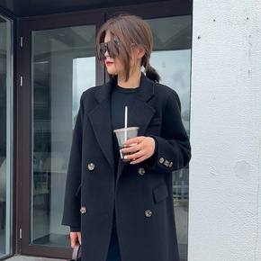 一眼看去就很贵!西服领长款气质通勤双面手缝羊绒大衣...