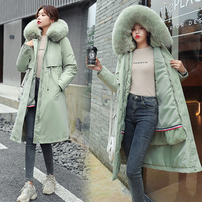 中长款派克服2021年冬季新款加厚毛领羽绒棉衣棉服...