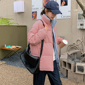 韩系温柔风棉服网红两面穿外套女短款面包服棉服女20...