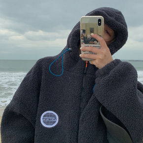 加绒仿羊羔毛外套女ins潮冬季刺绣宽松韩版加厚棉服...