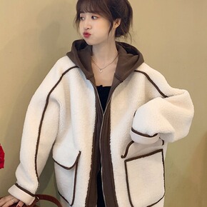 立领羊羔毛加厚外套女2021年新款秋冬季棉衣棉服拉...
