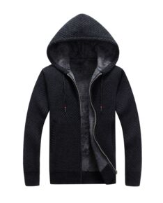 厂家代发秋冬男士开衫毛衣加绒加厚连帽休闲针织衫保暖...