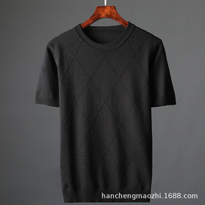四季冰丝毛衣短袖t恤男装圆领薄款潮流半袖毛衫打底V...