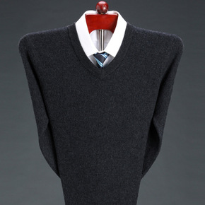 一件代发冬季羊绒衫男式加厚V字领毛衣 中青年保暖打...