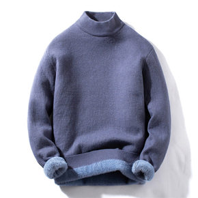 半高领仿水貂绒毛衣男士秋冬季加绒加厚针织打底衫线衣...