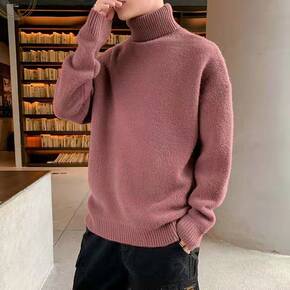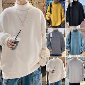 秋冬季纯色羊毛衫男士高领套头打底毛衣大码宽松针织羊...