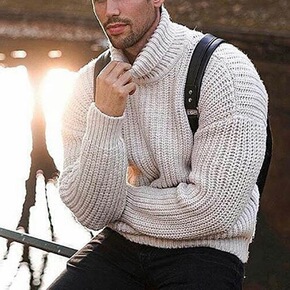 ebay秋冬新款外贸男士针织衫跨境套头高领简约时尚...