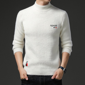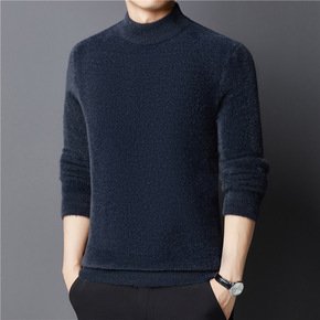 2021新款冬季水貂绒毛衣男时尚韩版半高领仿貂加厚...