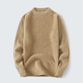 毛衣仿貂针织衫2021冬季外贸新品休闲圆领纯色男士...