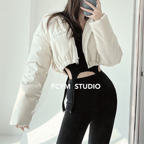新品白色短款棉衣女