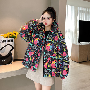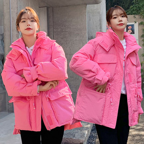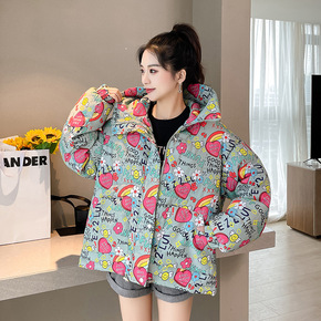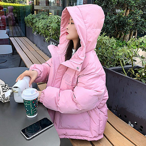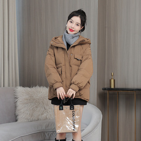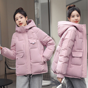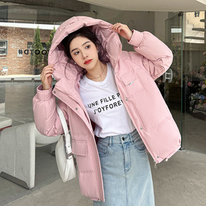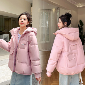 时尚连帽短款面包服女2021冬季新款韩版宽松潮流后...