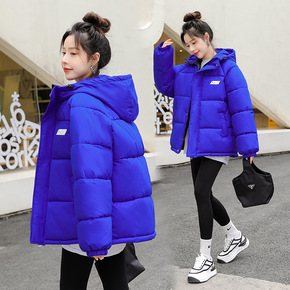 棉衣女短款2022冬季新款克莱因蓝羽绒棉服宽松加厚...