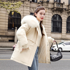 大码加绒派克服女短款2021冬新款韩版大毛领时尚加...