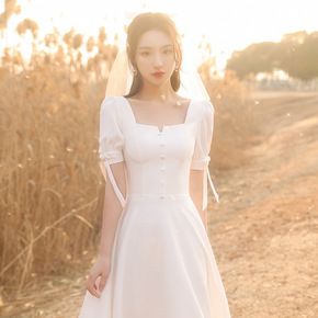 婚纱礼服2021新款夏季法式婚纱复古出纱轻婚纱长款...