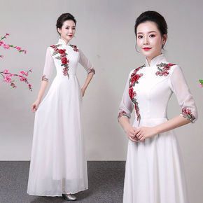 2021新款演出旗袍修身长款宴会年会晚礼服大合唱团...