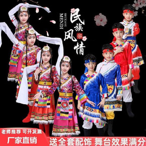 新款蒙古袍蒙古服女装藏舞儿童连衣裙表演服饰比赛服蓝...