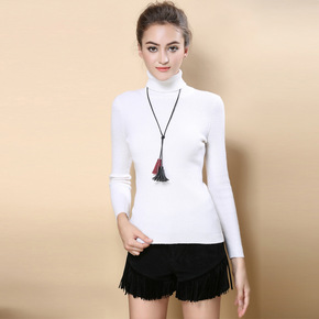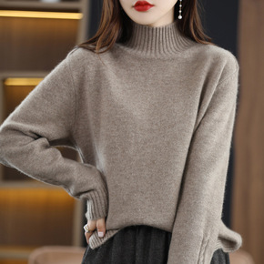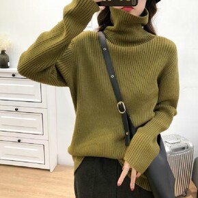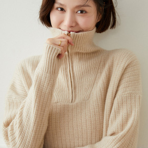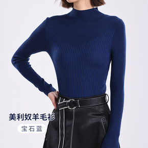 秋冬女士宽窄坑条显瘦毛衣 可机洗美丽奴全羊毛半高领...