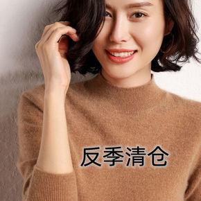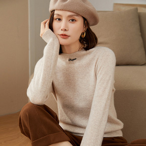 纯山羊绒女装时尚衫纯色字母刺绣半高领山羊绒衫女毛衣...
