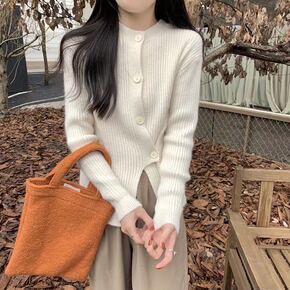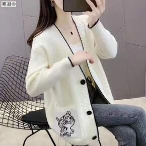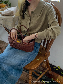22年秋冬新款针织羊毛衫绞花编结针织开襟衫女短款小...