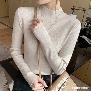 云朵绒半高领羊毛山羊绒打底衫女2022秋冬新显瘦纯...