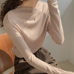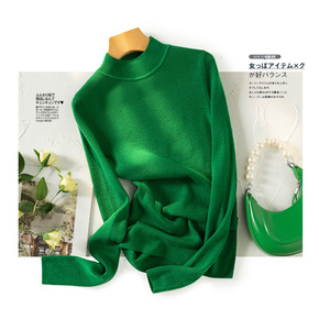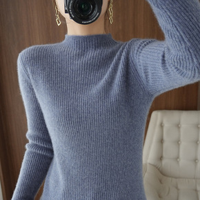 秋冬100%纯羊毛衫女半高领纯色韩版修身针织羊绒衫...