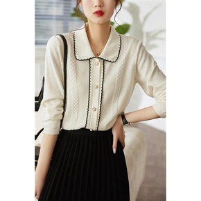 白色羊毛针织开衫女2022早秋新款时尚百搭海军领短...