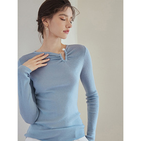 荣太 真丝羊绒纯色毛衣女2022秋装新款知性修身弹...