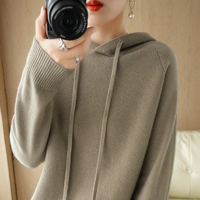 2022秋冬季新款羊毛衫女套头毛衣连帽衫宽松休闲加...