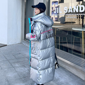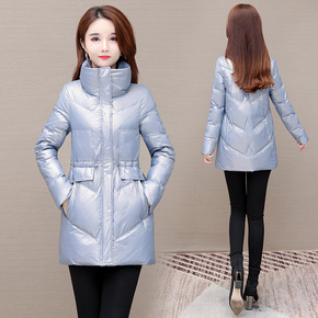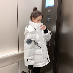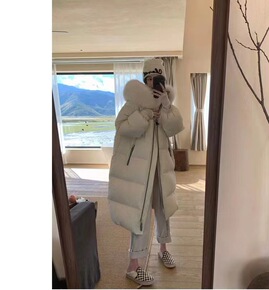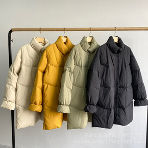 2021冬季新款连帽长袖A型休闲拉链长款羽绒服女装...
