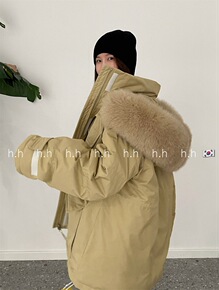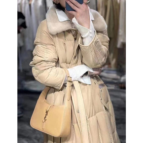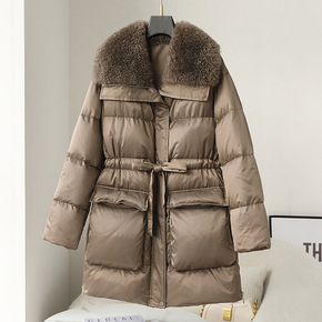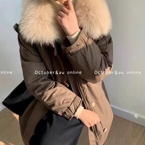 M茶太太欧洲站冬季新款水貂毛领可脱卸白鹅绒洋气羽绒...