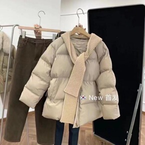 韩国小个子2021新款中长时尚围巾针织帽修身收腰羽...