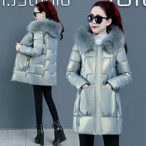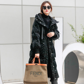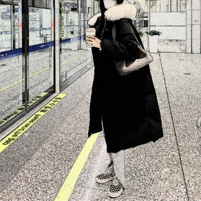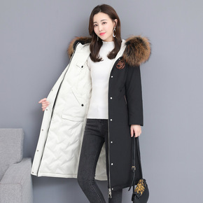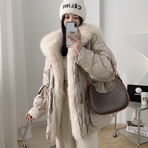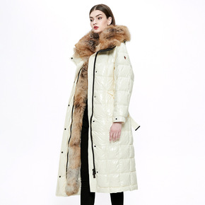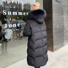 欧美冬季新款羽绒服女 银狐大毛领加厚防寒过膝免洗白...