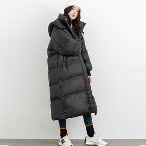 舒适羽绒服加长加厚冬新保暖立领连帽防风显瘦纯色外套...