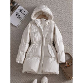 冬季长款羽绒服女年新款保暖过膝简约三代雪梨白鸭绒外...