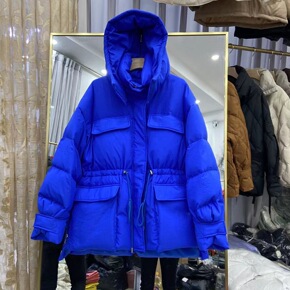 新款羽绒服拉链都市休闲收腰连帽轻薄韩版蓝色加厚白鸭...