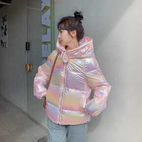 亮面羽绒棉服女2021新款冬季免洗洋气棉衣连帽宽松...