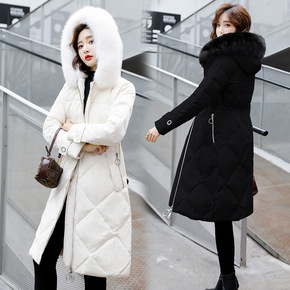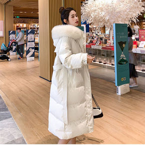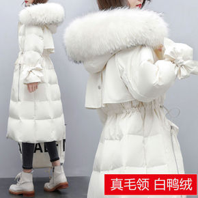 白鸭绒羽绒服中长款过膝收腰加厚2021年新韩版修身...