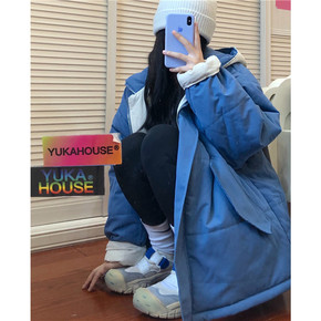 冬季纯色面包服克莱因蓝抽绳棉服外套女冬季新款港风宽...