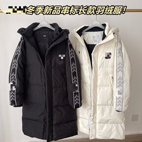 韩版潮牌加厚白鸭绒中长款羽绒服字母串标休闲长款羽绒...